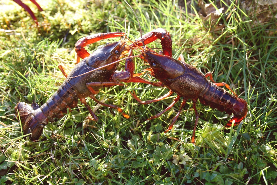 L’espèce la plus répandue et apparue en premier dans les milieux naturels français (en 1911 dans le Cher) est l’écrevisse américaine. Présente en grand nombre dans les milieux où elle prolifère, elle provoque malheureusement de gros déséquilibre biologique : destruction des herbiers, prédation ainsi que le creusement et la destruction des berges où elles font leurs terriers.