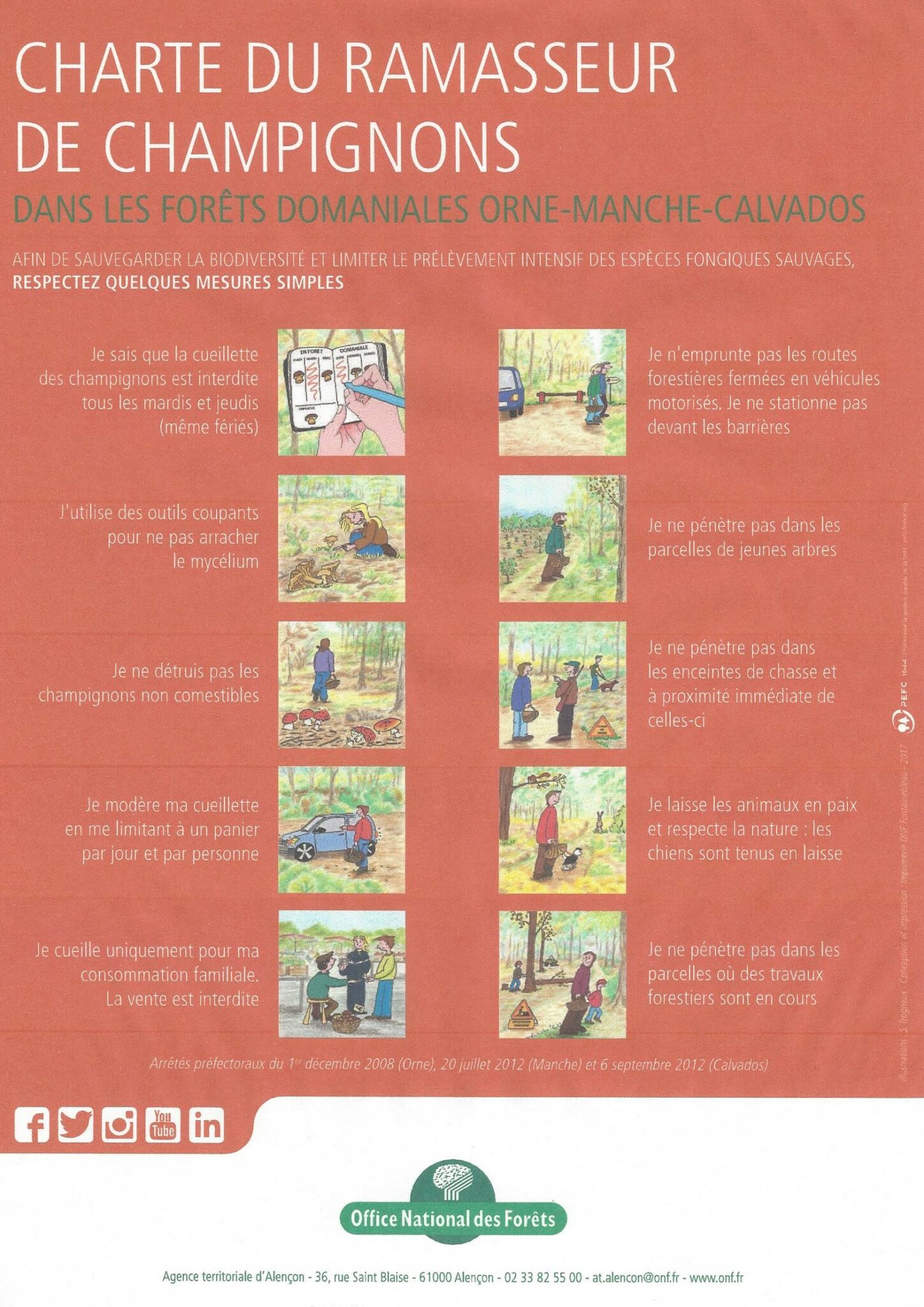 Comme chaque année l’Office nationale des forêts, gestionnaire des forêts domaniales, rappelle que la cueillette des champignons est réglementée dans les forêts domaniales de l’Orne, de la Manche et du Calvados.