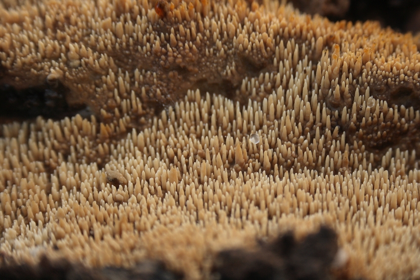 Les aphyllophorales sont étymologiquement des champignons qui ne portent pas de lames. Cet ancien ordre, caractérisé par l’absence d’un voile (hyménium libre) contrairement aux agaricales, présente 31 espèces indicatrices lignicoles. Une bonne partie d’entre elles sont des champignons dont la surface est étalée sur la face inférieure du bois mort (corticiés), d’autres comme les Hericium sont formés d’aiguillons ou, tel Clavicorona pyxidata, ressemblent à du corail. Les formes sont variées pour ces champignons peu étudiés dans le monde mycologique.