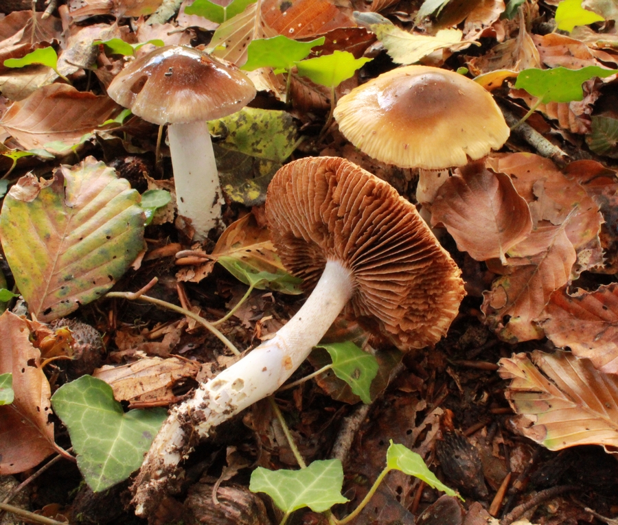 S’il y a bien des champignons que j’observe plus que j’identifie, ce sont les cortinaires. En effet, hormis quelques espèces courantes et/ou à silhouettes caractéristiques, les cortinaires sont nombreux et assez souvent très difficiles à identifier. Il en existe à peu près 2000 mais de nouveaux taxons sont constamment décrits et de nouvelles synonymies publiées. Pour un grand nombre d’espèces, le recours au séquençage ADN est bien souvent nécessaire. Pour les espèces plus simple à identifier, les caractères importants à noter sont la silhouette, la couleur et la réaction face à certains réactifs chimiques des lames et de la chair lorsqu’elles sont jeunes. Il est aussi nécessaire d’observer le type de de voile, appelé aussi cortine à l’endroit où il s’étire entre la marge du chapeau et le pied.