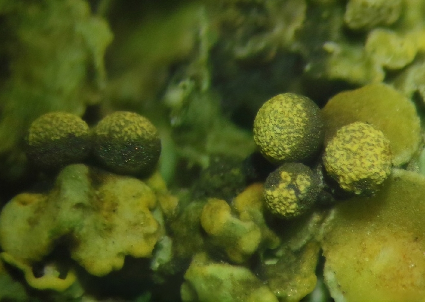 Lycogala cf. guttatum 02/08/2025 Vésicules très rapprochées et spores réticulées jusqu’à 8 mailles /diamètre